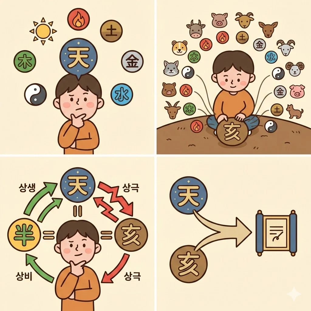 오행 관계가 뼈대라서 상생·상극·상비를 먼저 확정해야 해석이 흔들리지 않습니다. 그다음 방향을 붙이면 “왜 편한지” “왜 압박인지”가 문장으로 정리돼서 실제 생활에서 확인하기 쉬워집니다.