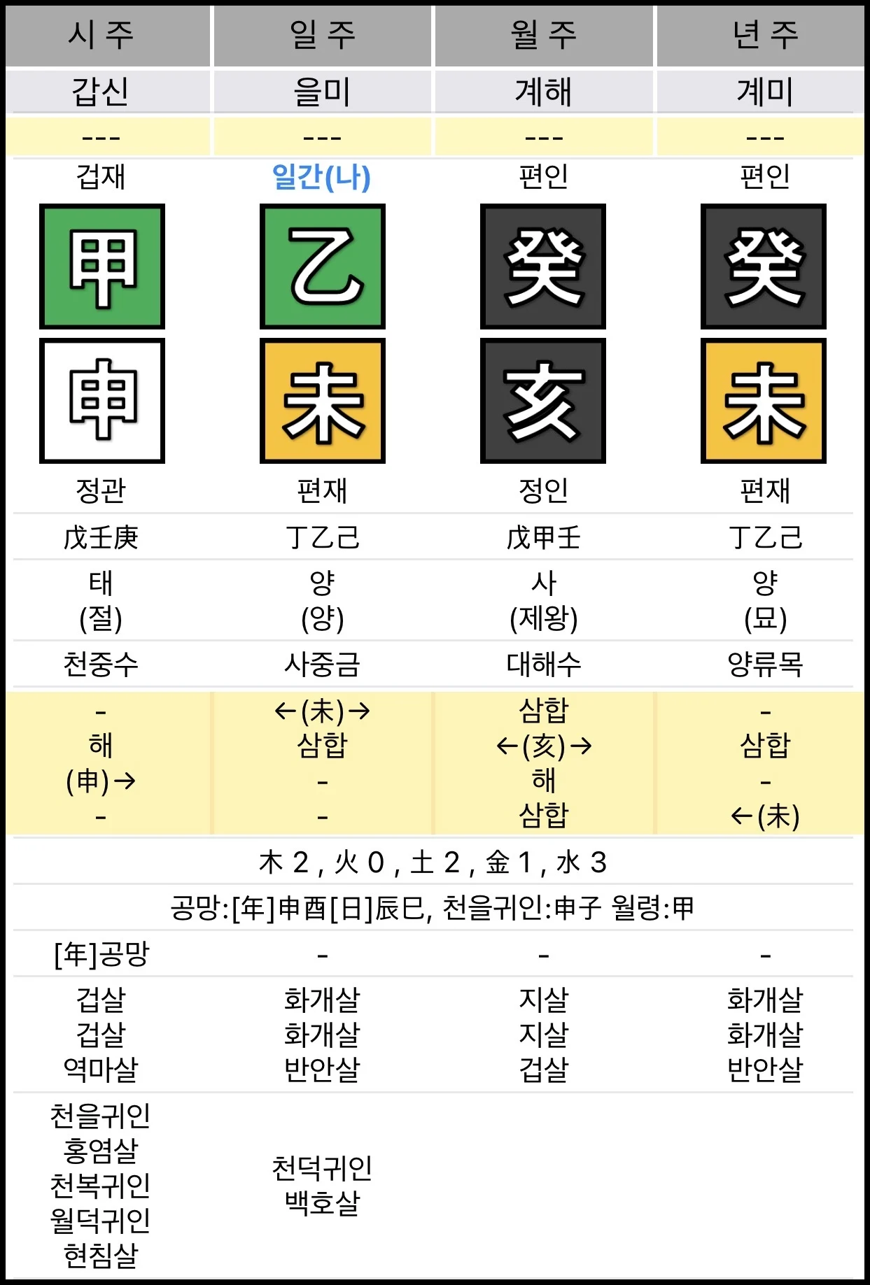 남자 사주에서 일간이 을목이고 월지가 해수로 잡혀 있으면, 기본적으로 한 번에 강하게 밀어붙이는 타입이라기보다 꾸준히 실력을 쌓아 올리는 쪽에 더 가깝게 보입니다. 을목은 작고 부드러워 보여도 쉽게 꺾이지 않는 성질이 있고, 계수와 해수가 받쳐주면 자기 관리와 반복 훈련에서 강점을 드러내는 경우가 많습니다.